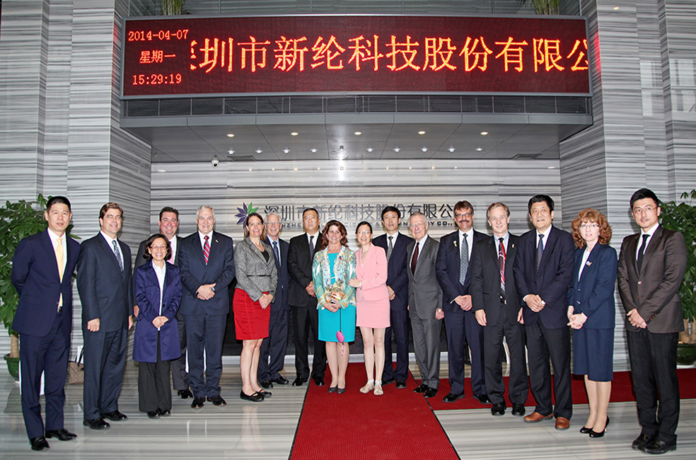 4月7日午後、アメリカLA貿(mào)易投資訪華チーム一行14名が、深圳市新綸科技株式有限會社を訪れた。中國國際貿(mào)易促進委員會深圳分會副會長陶永欣氏、深圳市新綸科技株式有限會社董事長侯毅氏と社長張原氏等の幹部は、訪華チームと面談した。